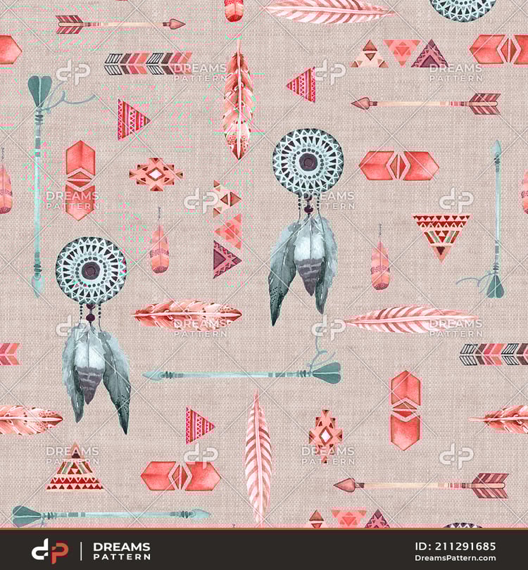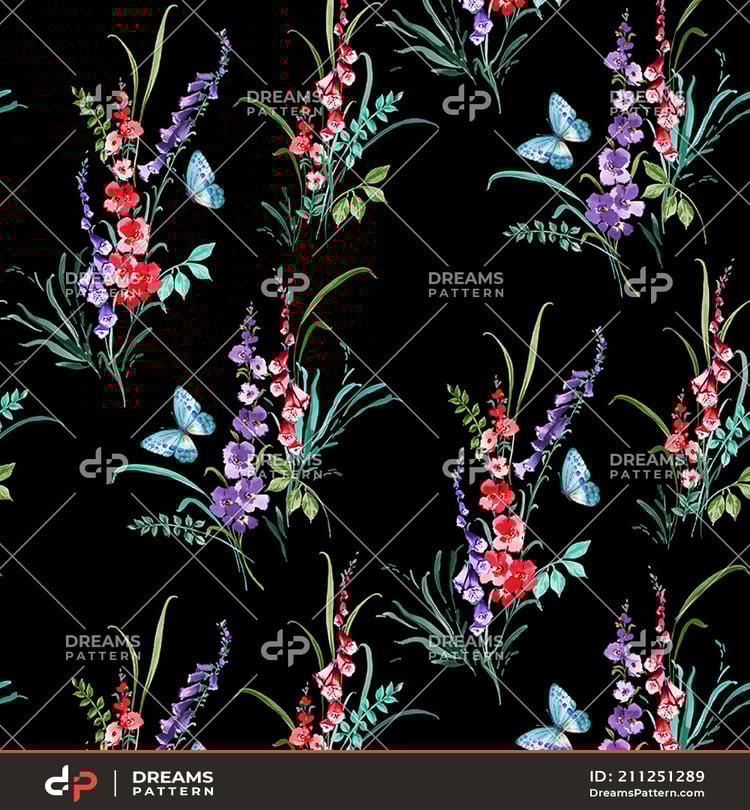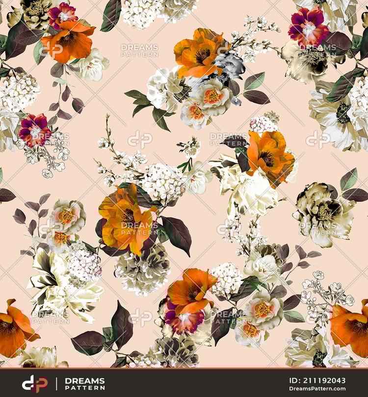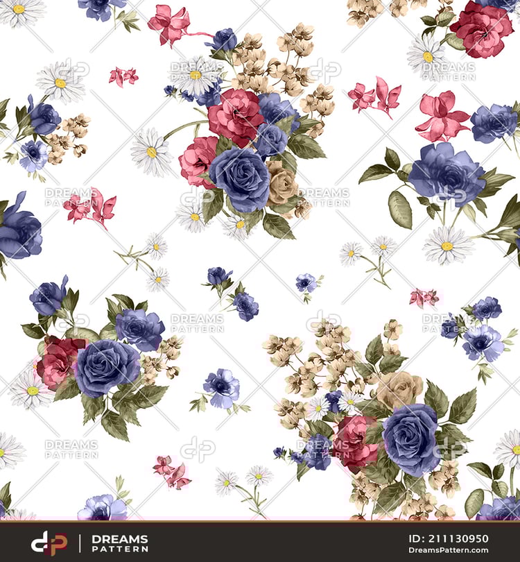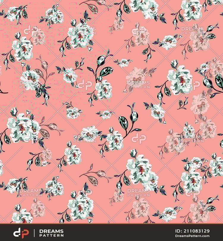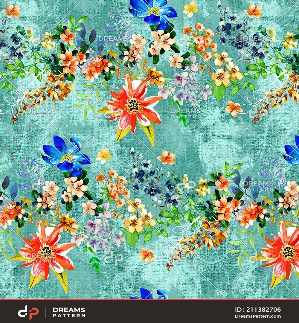 Seamless Watercolor Floral Pattern. Repeated Design of Small Flowers and Leaves.
